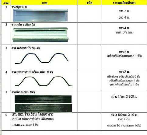 มุ้งกันแมลง มีขนาด 16 ตา, 20 ตา, 32 ตา และ 40 ตา กว้าง 2.5 m และ 3 m ยาว 50 m และ 100 m